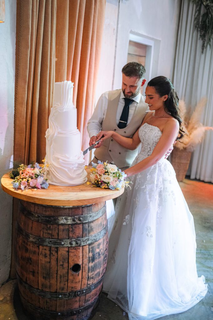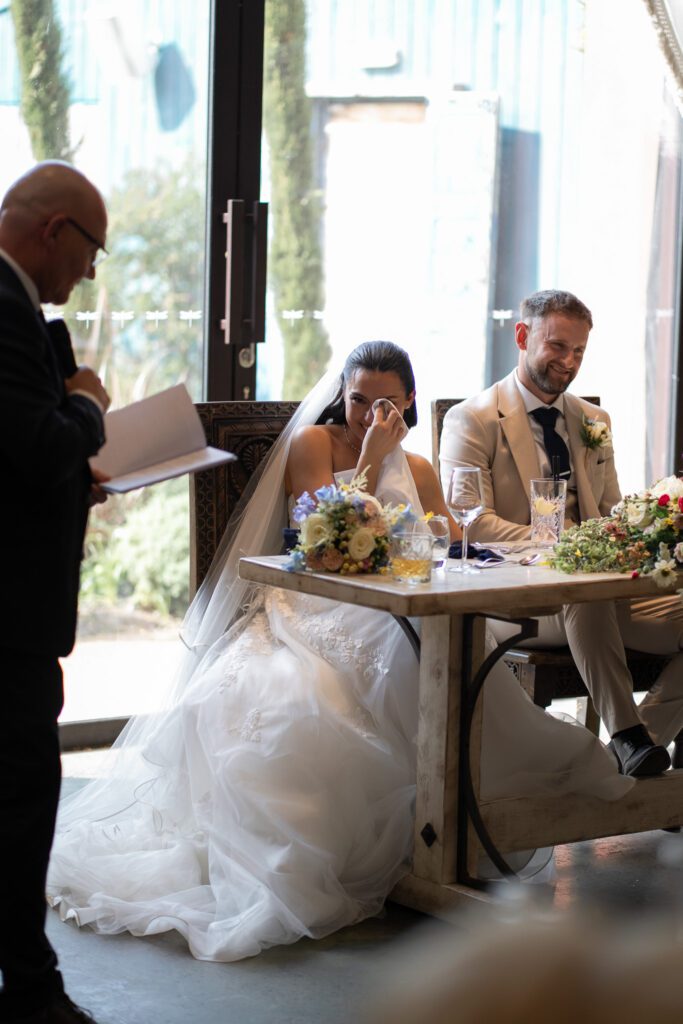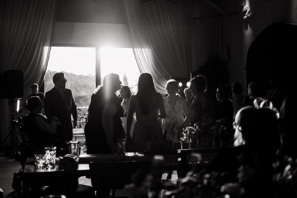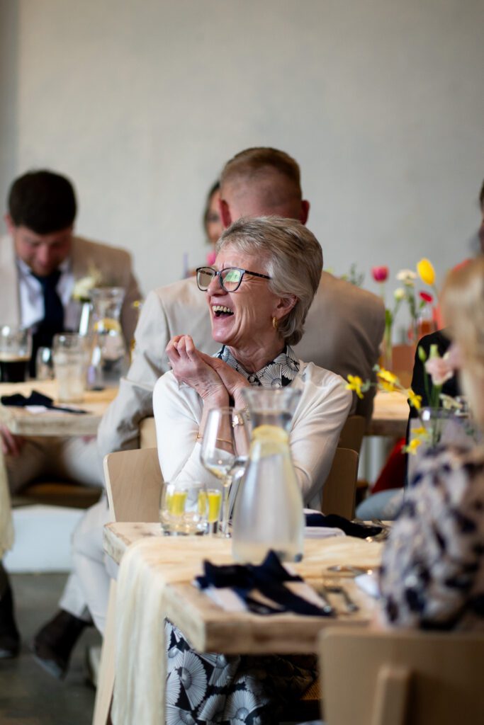 Shortly after their couple portraits, Georgia and Michael headed back inside the venue for speeches and their sit-down meal. The speeches were a hit, with the Groomsmen creating lots of laughter, and Georgia’s Dad getting the tears flowing. As the evening unfolded, the day continued just as it had begun. Un-rushed and full of connection. Georgia and Michael spent time with their family and friends, catching up, laughing, and simply enjoying their day together (which is exactly how it should be!)